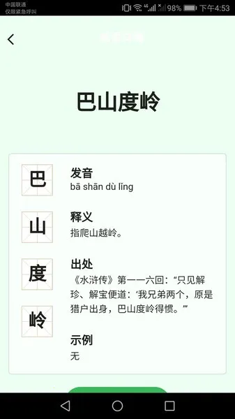 2、在这款软件里,可搜索成语意思,知晓成语由来,让学习成语的过程变得更有深度,更好地理解成语内涵。