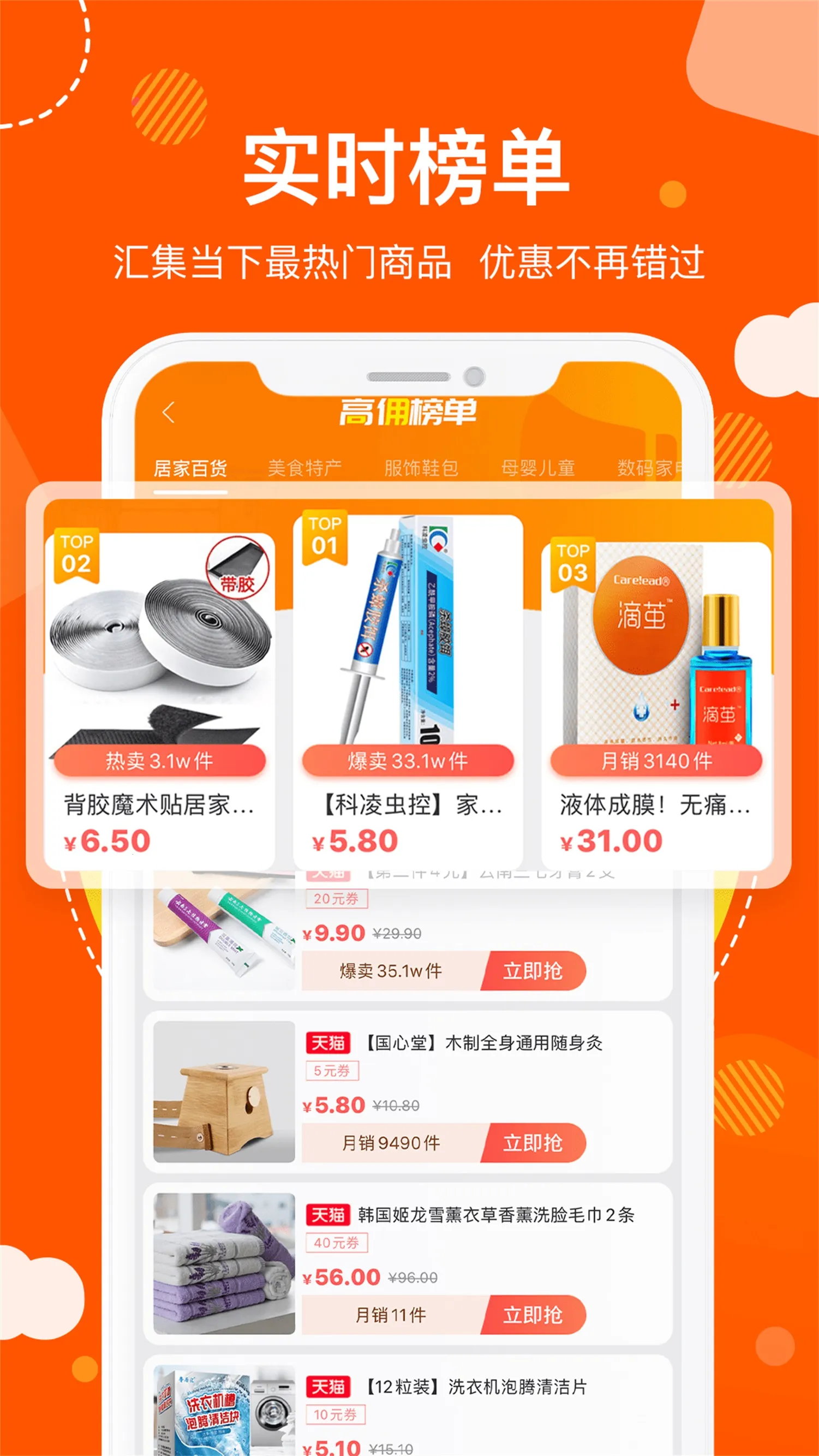 1、与淘宝天猫等一线商家合作,每日提供丰富优惠券,覆盖全品类。