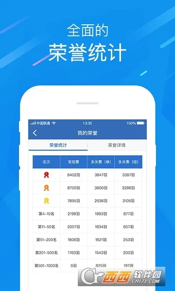 3. 信息与赛事数据关联,实现全面个人荣誉统计。