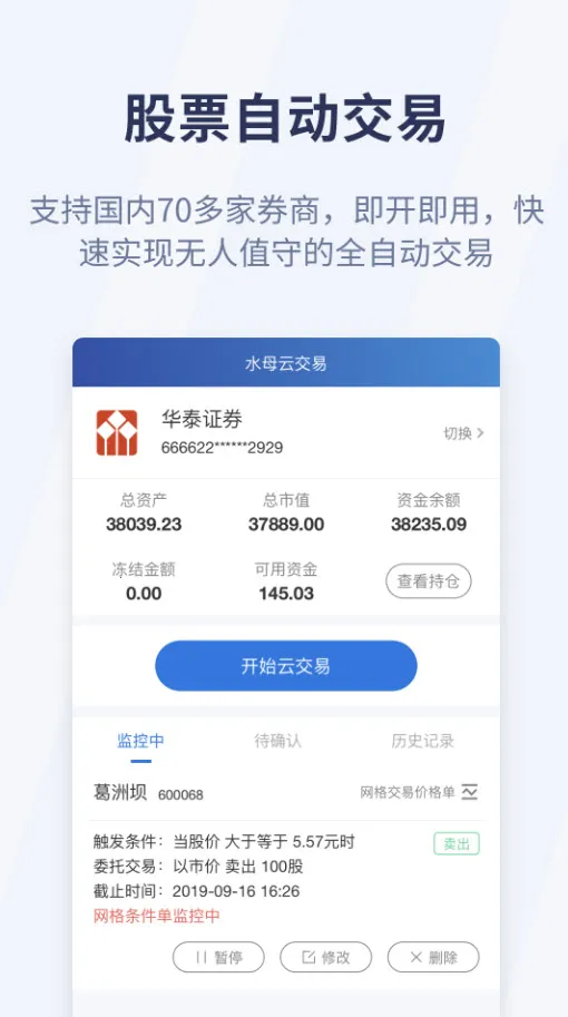 1、与国内70多家券商合作,支持股票自动交易,安卓版可快速实现无人值班全自动交易。