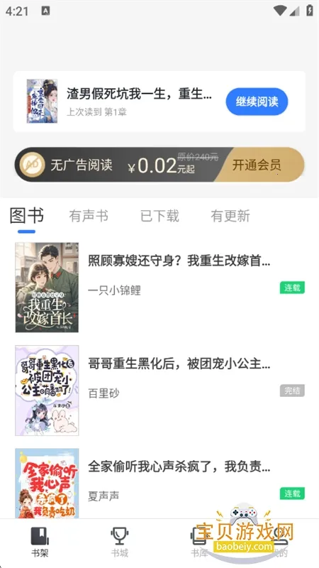 2、功能多样:具备专属阅读提醒功能,可及时通知用户更新章节;支持一键缓存免费书城所有书籍,告别网络限制,随时随地阅读;设有听书模式,支持语音朗读与语速调节,方便通勤等场景使用;还支持有声听书,沉浸式朗读解放双眼,看书还能得金币。