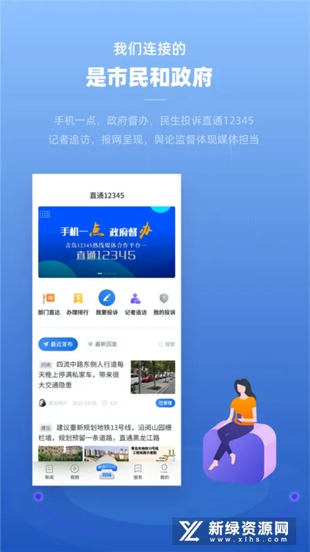 3、是连接民意的信息港,有网端市民投诉平台,直通12345政务热线,新闻舆论监督24小时在线。