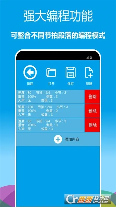 2、自由选择与自定义:用户可自由选择任何速度,从每分钟1至300次,还能自由选择节奏内容,有多种节奏类型可供挑选。同时支持自定义节拍,可根据自己对乐器的掌握程度和训练需求来设定,每首歌曲都能调节其节奏。