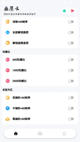 画质云最新手机版是专为和平精英、香肠派对等游戏打造的画质辅助软件。它功能强大,能解锁120帧、超广角等画质,还有语音包等资料。微体积无广告,适配各种手机,操作简单易上手。