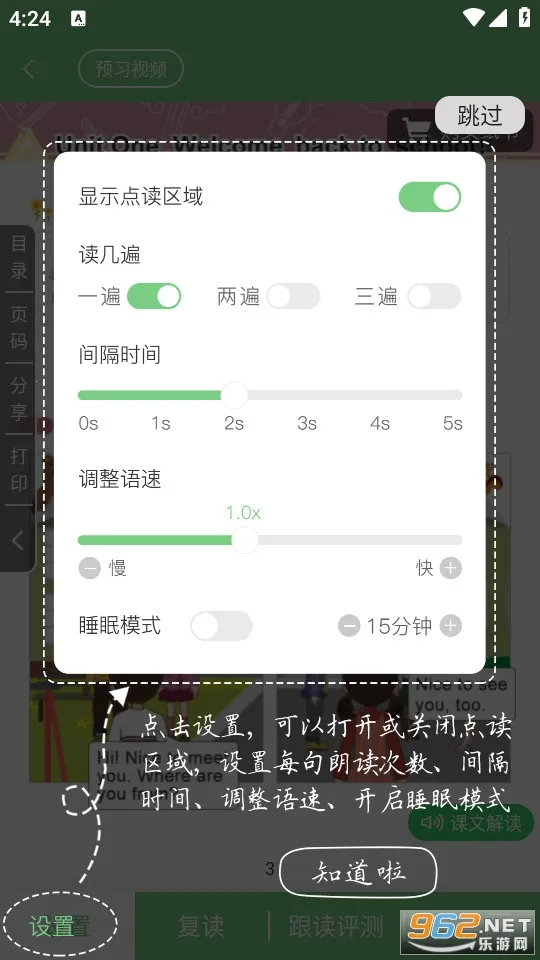 4、学习方式灵活:能根据自身需求自定义跟读范围,设置连读模式、调整语速;情景动画和游戏闯关版块让学习更生动,还可模拟练习提升语言运用能力。