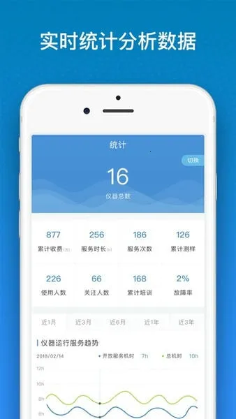 1、能精准详细记录仪器数据,方便了解仪器相关信息,还能在线了解仪器运行趋势,轻松掌握服务机时和总机时。