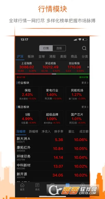 3、功能丰富:有中国人气投资者互动社区股吧,专业数据覆盖全球重要市场行情,还有智能选股、主力资金流等实用功能。