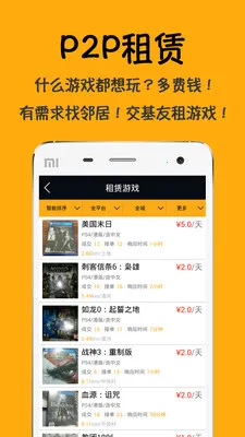 4、点对点租赁功能,连接附近玩家,便捷交易闲置游戏,有效节省游戏开销,实现资源共享。