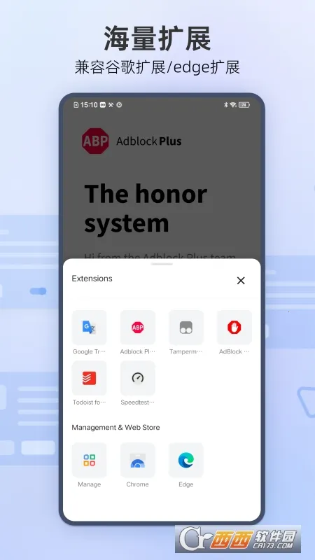 1、插件丰富且易管理:支持安装海量谷歌扩展和 edge 扩展,如油猴脚本、清理大师等成千上万的插件扩展,还具有管理扩展的能力,可随时安装、卸载、停用插件,从底部工具栏就能随时打开扩展管理页面,操作更符合使用场景。