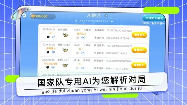 3、强大AI辅助:国内最强的围棋AI“绝艺”助力复盘,不仅给出每步棋胜率和建议,还能分析关键棋。