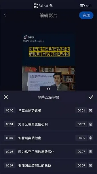 2、利用AI自动识别视频字幕,匹配时间戳生成字幕。