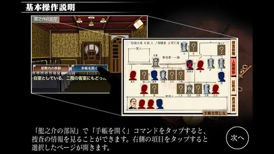 1、扮演侦探解谜:玩家可扮演侦探藤堂龙之介,解决一系列杀人事件,以富豪影谷恍太郎遭毒杀事件为开端,解开遗留有恍太郎遗言的西洋骨牌塔罗牌,找出真正的犯人。