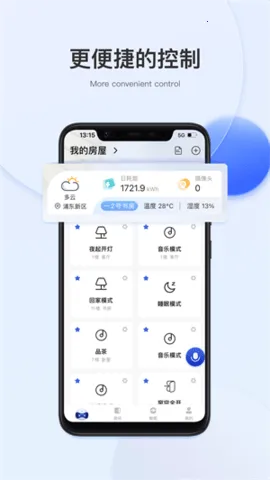 1、全屋设备集成:支持灯光、家电、安防等跨品牌设备统一控制,实现全屋设备的集中化智慧管理。
