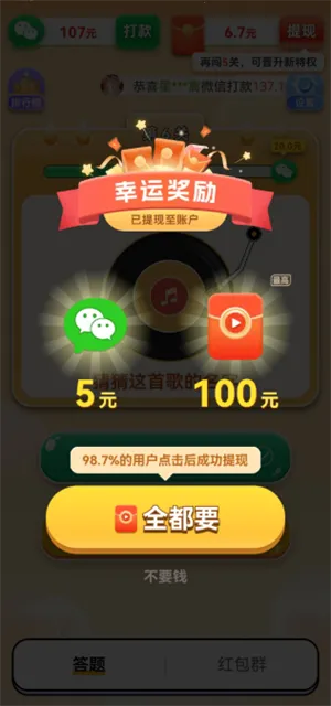 金曲宝库是一款听歌赚收益的休闲猜歌红包手游。有海量关卡,曲风丰富,操作简单易上手。完成关卡可领丰厚红包,还能积累收益换实用商品,带来听歌赚钱新体验。