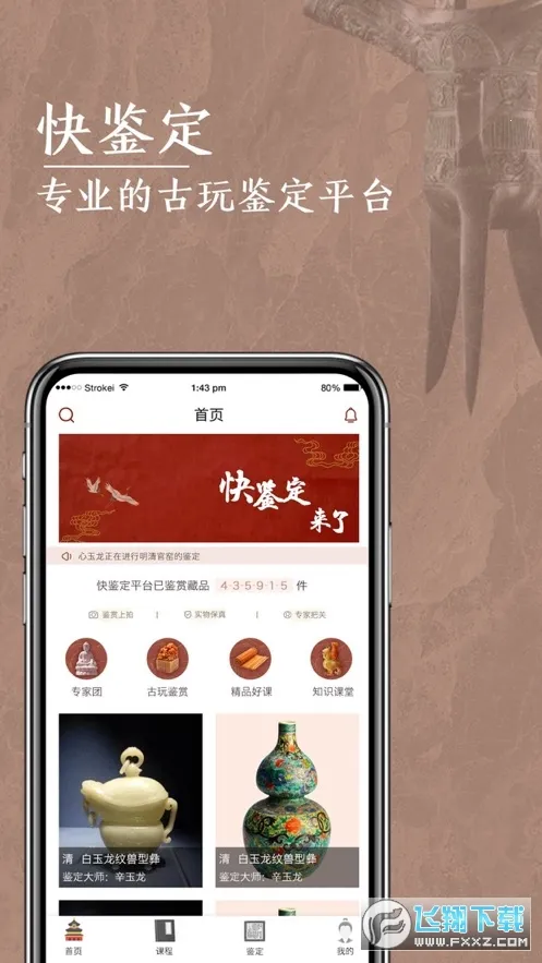 快鉴定2025官方最新版本是深圳市仟指科技有限公司推出的古玩鉴定与学习交流平台。支持六大品类鉴定,权威专家在线,多种方式免费鉴宝。还有丰富课程与知识分享,优化了界面和体验。