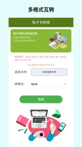 电子书转换器App是免费工具软件,兼容MOBI、EPUB等多种主流小说格式,能打破格式壁垒实现轻松互转,操作简单一键完成。还支持查看转换历史、在线阅读,功能实用,使用方便。