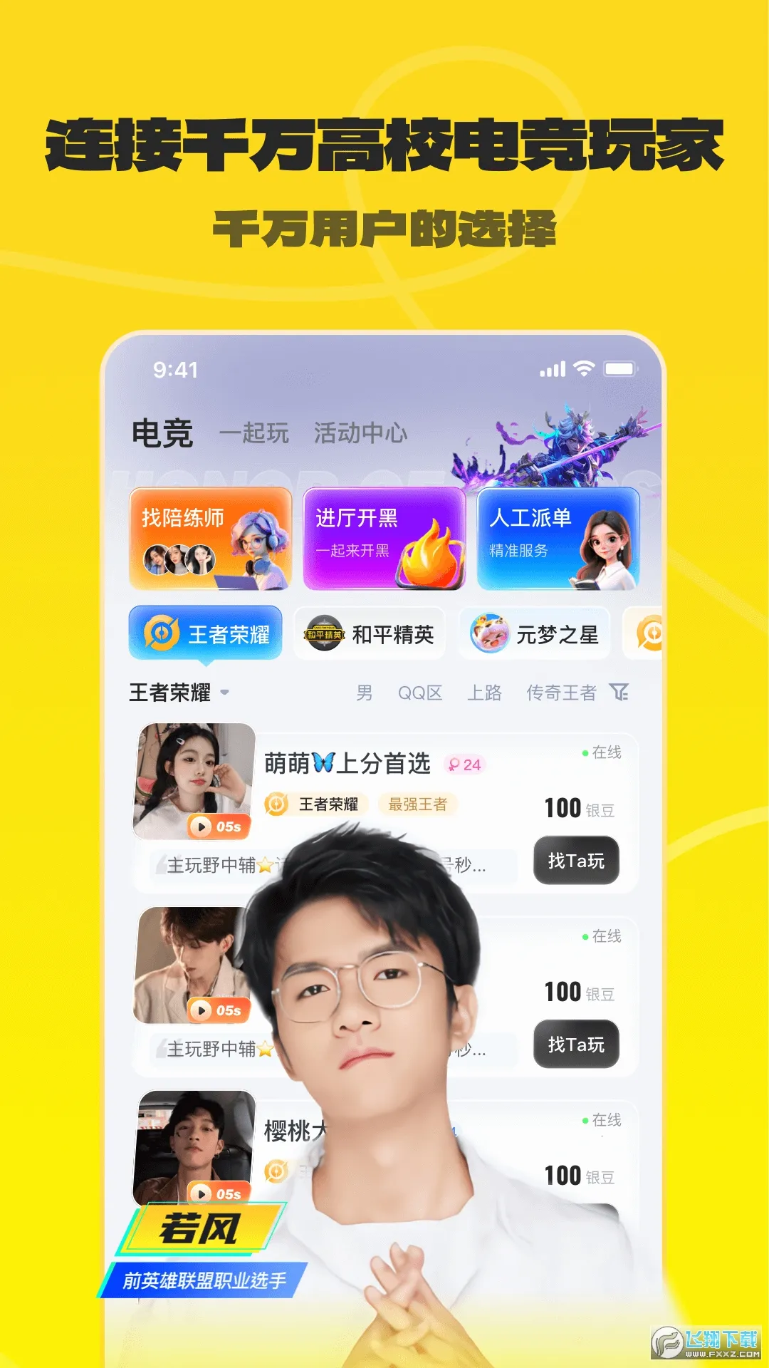 不鸽电竞极速版2025官方最新版本,汇集各类游戏陪玩,可按需挑选。有游戏直播可在线观看、与主播互动,还能获取最新资讯。有赛事竞猜等玩法,还有声控福利、语音派对等社交特色。