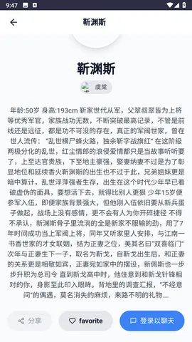 4、开启聊天需先登录,在主页选喜欢的角色,看完介绍下滑就能开启。软件所有内容免费使用,无任何限制,虽因服务器问题打开可能较慢,但耐心等待即可。角色审核通过才会显示在主页,审核未通过也能免费聊天。