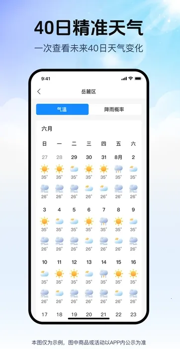有了它,日常出行和活动安排更从容。你可以轻松查看当日各时段的温度曲线与天气变化,还能提前了解未来40日的天气走势,提前制定出行或工作计划。多时段的降雨预测,让你提前做好防雨准备;恶劣天气智能提醒,帮你提前防范极端气候。