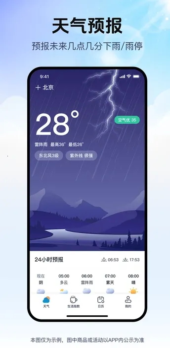 磨迹天气是一款精准天气预报app,整合多家权威气象数据,覆盖全国城市及县区。提供多时段降雨预测、恶劣天气提醒等,还有多种生活指数、日历功能,可一键分享,让出行安排更从容。