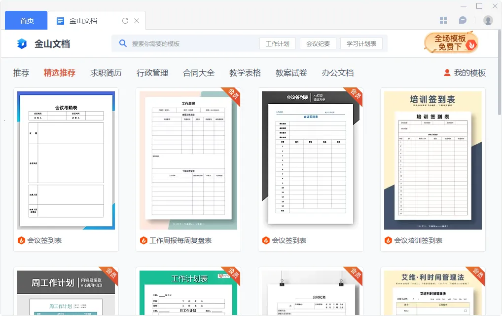 4、丰富模板资源:为用户提供1000个专业又好看的模板,涵盖文字、表格、演示、表单等,能帮助用户高效完成文档制作。