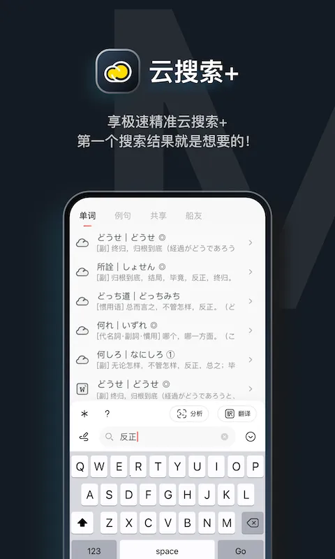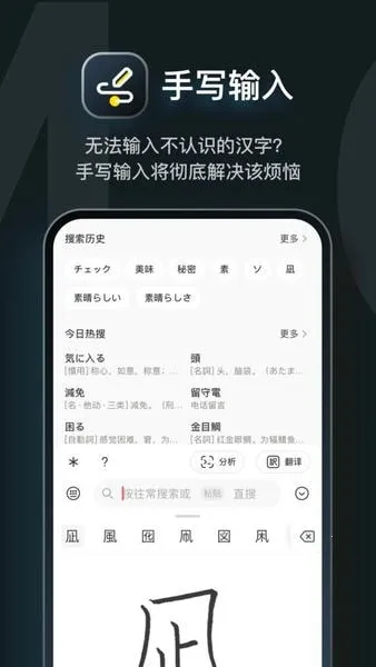 3、查词高效:支持中日假名、罗马拼音、英文等多种方式输入内容,自动快速检索词条,还具备丰富的词条联想功能,能拓展词汇量。内置离线详解词库,无需网络也能查词。