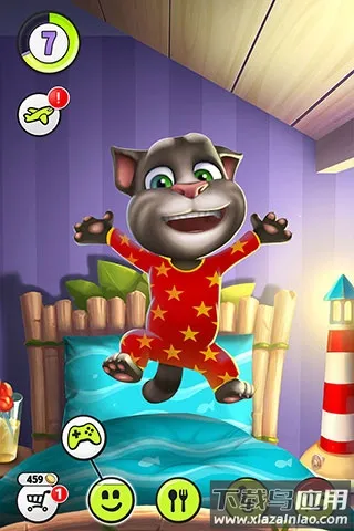 2、养育专属汤姆猫:和汤姆猫玩游戏、喂它最喜欢的食物、带它上床睡觉,陪它成长。