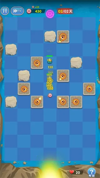 1、玩家可随意在方格内放置炮塔、机关枪、石块阻挡敌人进攻,尽情展现策略能力。
