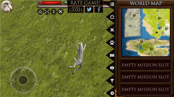 1、真实生存体验:玩家扮演可爱猫咪,通过捕猎小型动物生存,在超大地图场景中冒险探索,感受小猫的生存之道,同时要小心大型动物攻击。