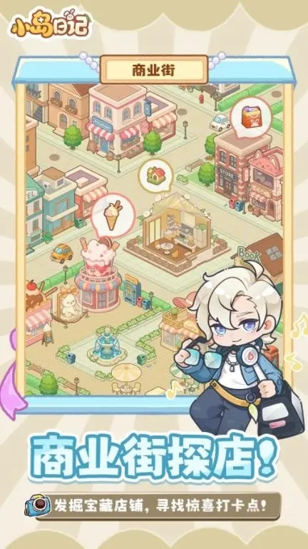 2、丰富任务挑战:设有主线任务,玩家需根据委托人需求完成各种挑战,完成后可获得奖励并解锁小岛更多功能;支线任务也趣味十足,如商业街探店、甜品工坊DIY点心、服装店定制专属衣服等。