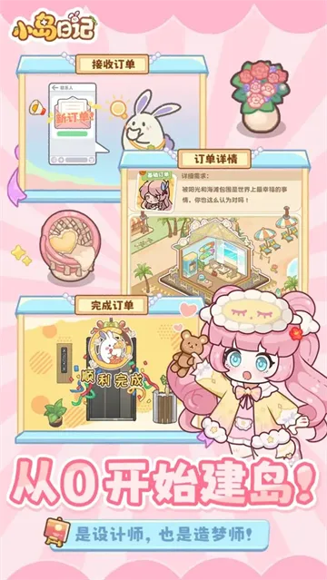 1、《小岛日记》是一款治愈的模拟经营手游,玩家能化身收纳师与居民,自由装修房屋、种植作物、饲养动物,打造理想田园生活乐园,还能和邻居温馨互动。