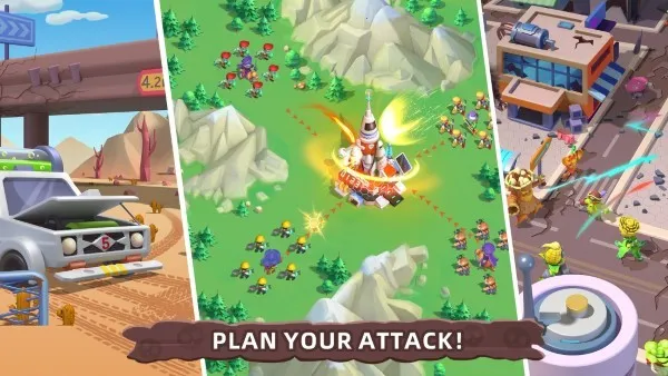 3、多元玩法模式:除塔防玩法外,还有家园建设玩法,玩家要收集材料重建被变异植物破坏的小镇,材料可通过清理垃圾堆获取。