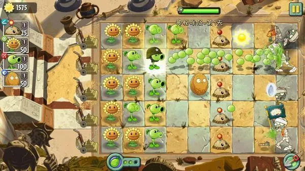 3、多样策略布局:玩家要在河姆渡环境中布置植物抵挡僵尸,每种植物特技和攻击方式不同,需根据僵尸类型巧妙选择部署。同时要收集阳光、土地等资源,合理管理资源。