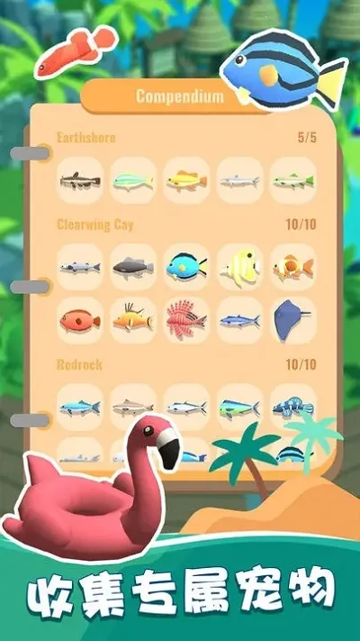 3. 玩法多样,不仅能钓鱼,还能建设岛屿、解锁船只、收集宠物,丰富了游戏体验。