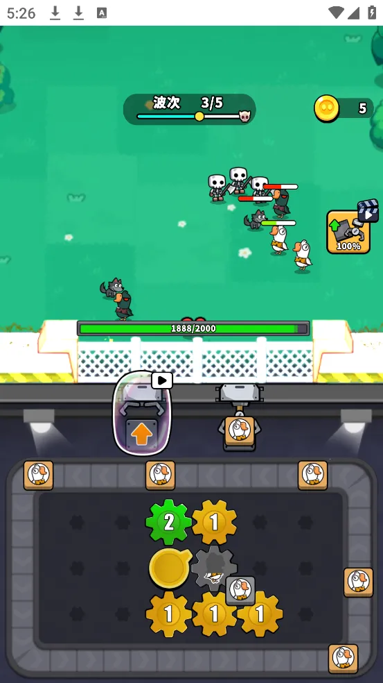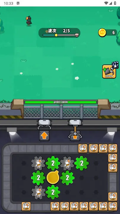 2. 塔防合成玩法独特,齿轮分攻击、辅助、功能三种,不同类型有不同效果,可叠加暴击率、提供治疗光环、触发范围沉默或减速等。