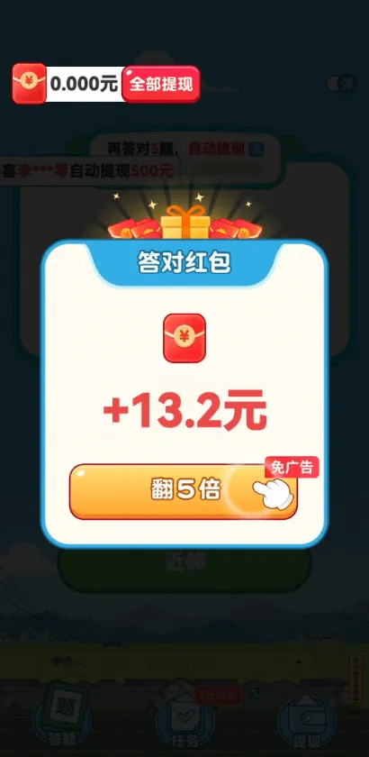 3. 奖励丰厚,答对一定数量题目,丰厚奖励源源不断。众多用户反馈,游戏实用性强,趣味性足,资源安全,能边玩边学还赚钱。