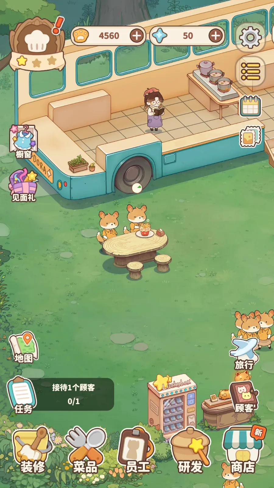2. 画风清新可爱,角色形象生动有趣,拥有丰富的任务系统和多样化菜谱设计,每一关都有新体验。