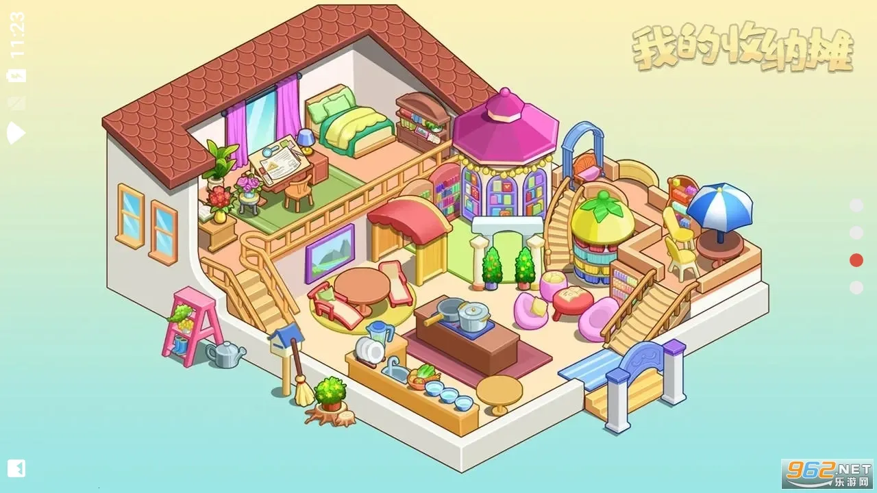 2. 精美的画面表现:采用手绘质感的卡通美术风格,色彩柔和细节生动,营造温馨居家的视觉氛围。物品归位后空间焕然一新,令人舒心放松。