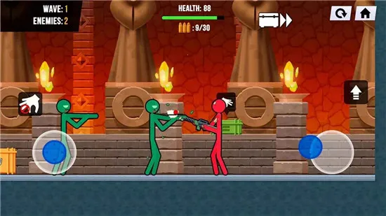 3. 操作简单,左边控制移动,右边控制武器攻击方向与跳跃,易于上手。
