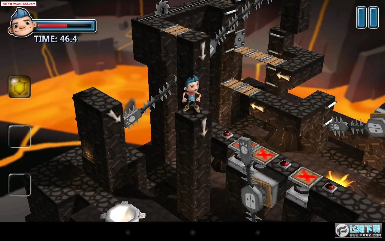 4. 需时刻保持警觉,避开旋转刀片、移动压板、巨型守卫等致命障碍,合理利用沿途道具,收集黄金解锁成就和升级,体验从挣扎求生到游刃有余的成长快感。