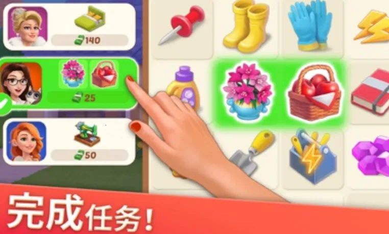 2. 玩法简单易上手,合并相同元素完成任务就能获奖励。