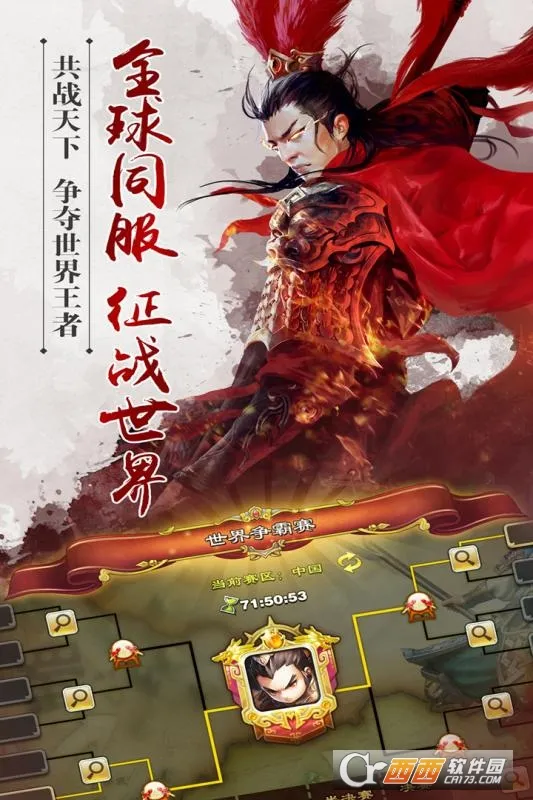 君临天下是一款超刺激的三国策略战争手游。这里有来自全球的玩家同场竞技,无分区服限制。游戏中有多达140位英雄武将等你收集培养,帮你实现主公梦。特色玩法丰富,比如神兵利器可自由搭配。在一统天下模式里,选势力城池攻击,获胜能得资源升武将等级,还有机会拿兵书、武将及宝箱奖励。