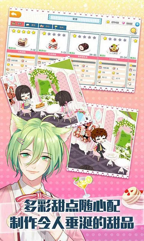 萌猫物语2025最新版本是一款融合恋爱养成与模拟经营的女性向游戏。玩家经营餐厅,解锁角色互动,还能制作40种甜品、自由布置店铺。通过多种方式培养店员,还有换装、宣传等丰富玩法。