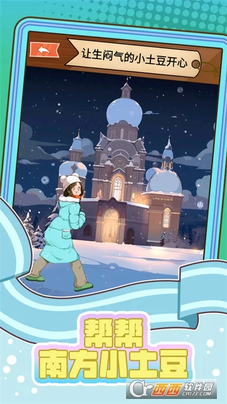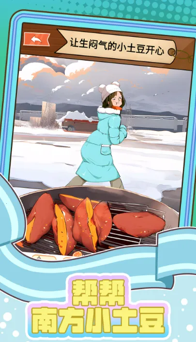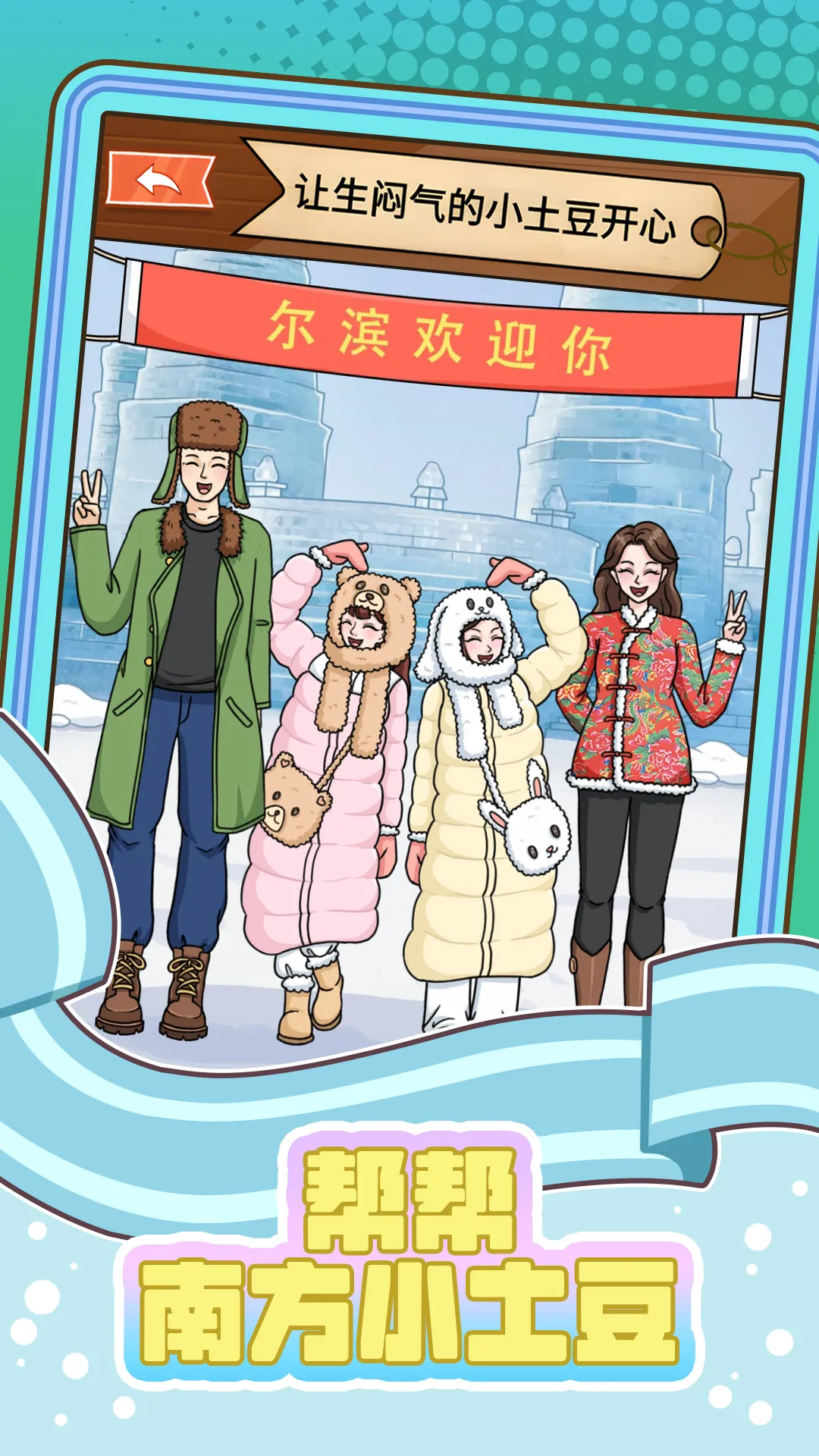 帮帮南方小土豆是一款关卡解谜游戏,适合各年龄段。玩家要帮小土豆勇闯哈尔冰,通过50个难度各异的关卡,运用道具、与人物互动,突破思维局限,在解谜中拓展思维、欢乐解压。