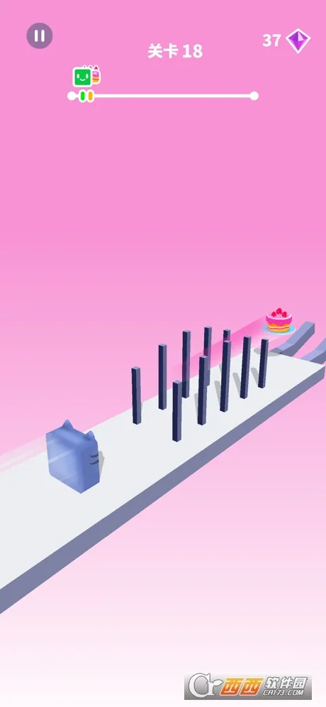 2. 拥有上百种关卡设计,难度循序渐进。独特曲折弯绕的障碍路线,各种大小的障碍,考验玩家的反应与手速,每一次挑战都充满新鲜感。