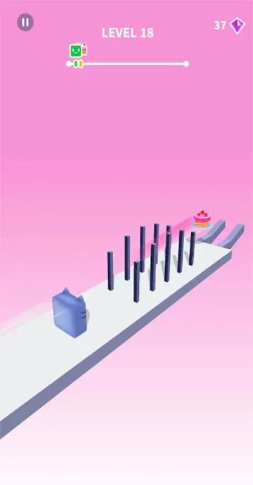 1. 操控体验:玩家操控Q弹果冻,通过上下滑动调整形状穿越障碍赛道,操作简单易上手。
