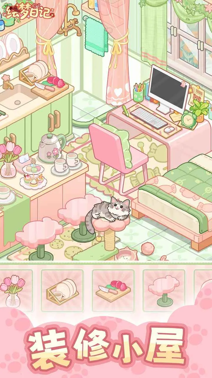 绘梦日记是一款治愈经营换装游戏,融合模拟经营、自由装修、少女换装元素。玩家在魔法小猫引导下翻新破旧小店,多线经营店铺,自由装修,随心换装,享受轻松治愈的开店生活。
