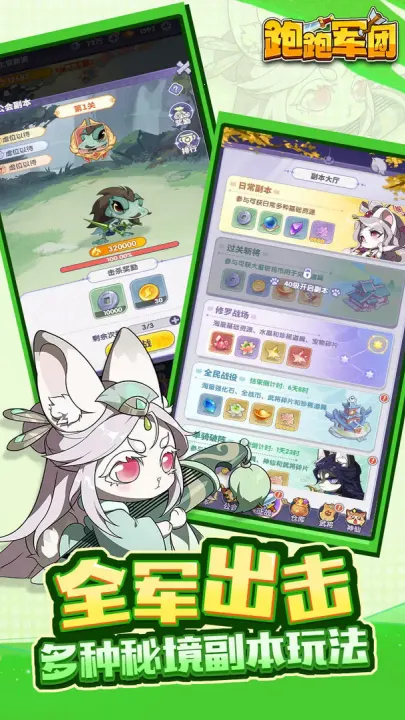 《跑跑军团》是一款超有趣的放置策略卡牌手游。它以三国为背景,有独创的扭蛋机战斗系统。在这里,你能通过合成提升士兵战力,比如3个刀兵合成铁甲巨盾,防御翻倍;3个弓手合成诸葛连弩,弹幕秒杀杂兵。游戏还有欧皇暴击,能概率摇出三国神将,像吕布一出场就能横扫全场。战场随机掉落兵法盲盒,神技BUFF能瞬间清屏,凑齐五虎上将还能激活全队暴击率30%。武将各具特色,魏系夏侯惇克制吕布,甄姬是优秀辅助;蜀系张飞是前排坦克,赵云是刺客型单体输出还能回血;吴系周瑜全能辅助,陆逊群伤高输出;群系吕布超厉害,优先供给资源。游戏有多种阵容推荐,前期新手阵容获取容易,能快速拉开星级差距;中期进阶阵容伤害和抗伤能力升级;后期终极阵容伤害极具爆炸力。单局3分钟快节奏战斗,碎片时间就能轻松刷关,合成和技能特效超解压,快来试试吧!