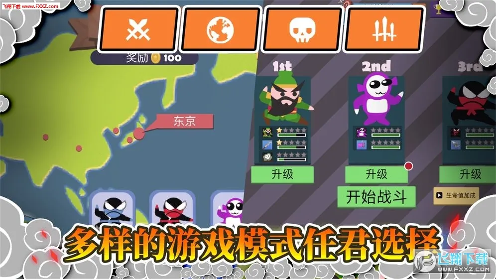 3. 提供多种模式选择,还有多种忍者可解锁体验,更设有独特升级系统。