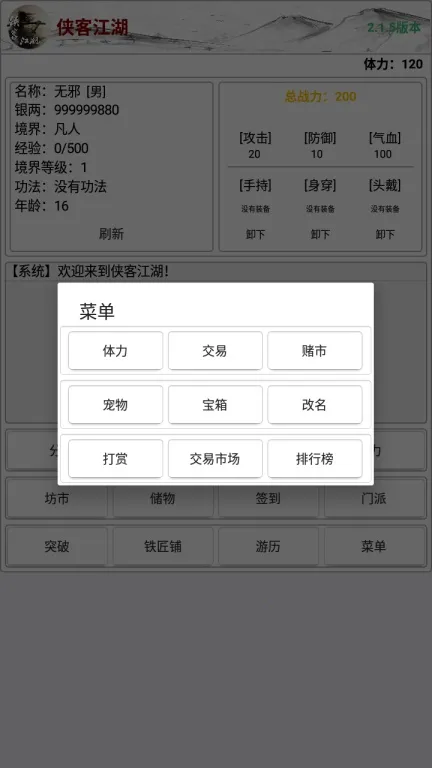 侠客江湖2025是一款仙侠冒险手游,高度还原武侠世界观。有丰富剧情、多样任务副本,百余侠客、多种武学,20多个门派,海量地图,可打造专属兵器,离线练功,玩法丰富,快来下载畅玩江湖。